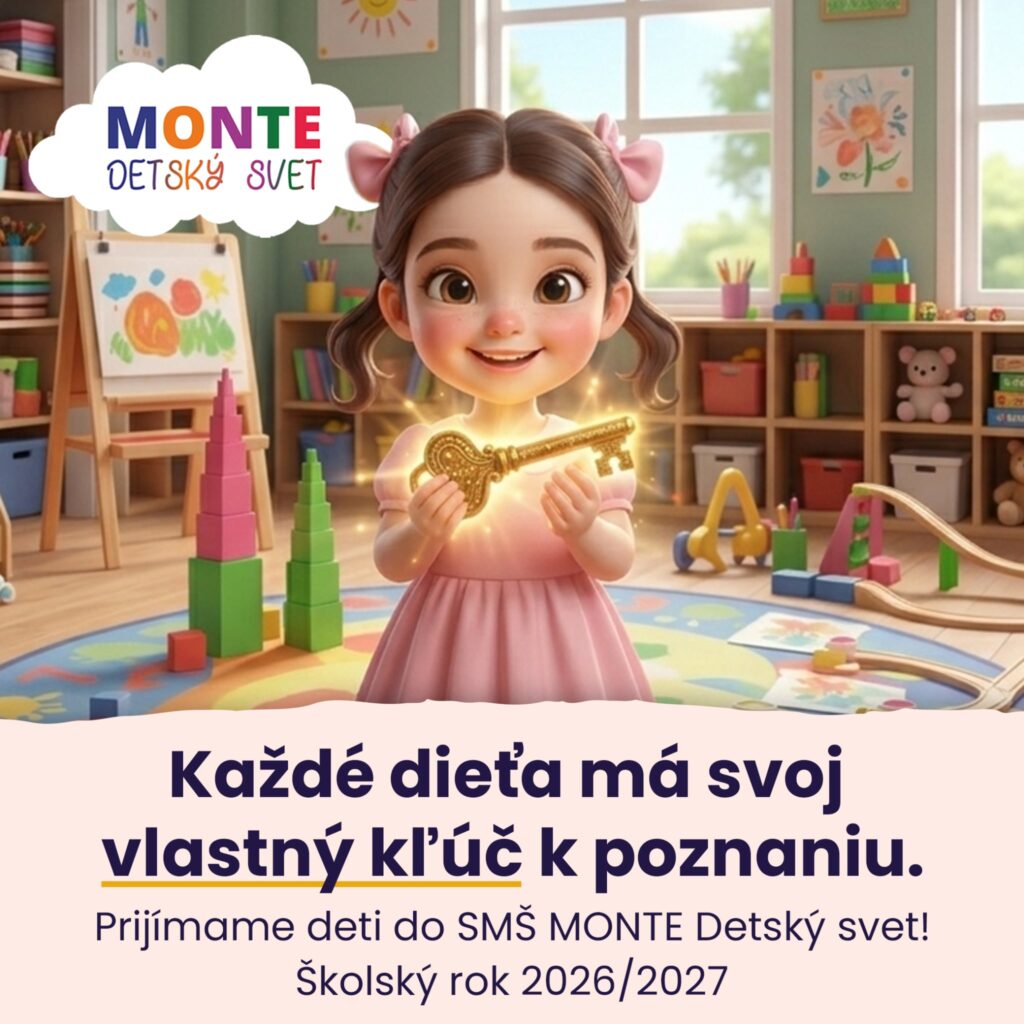 V SMŠ MONTE – Detský svet chceme ponúknuť možnosť hravého učenia, rešpektujeme individuálne tempo a štýl učenia každého dieťaťa, podporujeme nezávislosť a sebariadené učenie, pripravujeme prostredie tak, aby vyvolalo záujem a aktivitu.